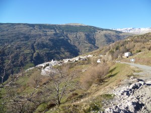We planned to do quite a long drive today. We were going to Capileira which is one of the tiny villages situated on the southern slopes of the Sierra Nevada National Park. Our route began on the A7 motorway heading towards Almeria. When we’d driven as far as we could along the motorway we came down onto the coast road and continued towards Motril. At the junction we turned inland and drove along the valley bottom. We reached the new reservoir and we turned right and took to the country roads. Eventually we arrived at Camping Orgiva in the village of that name. We stopped and went in to have a look around. Plots were of a reasonable size and the place was clean and tidy. There were very few tourers on site. Back in the car, my dashboard indicated that we were at 1275 feet above sea level so probably once the sun goes down, the winter nights will become cold.