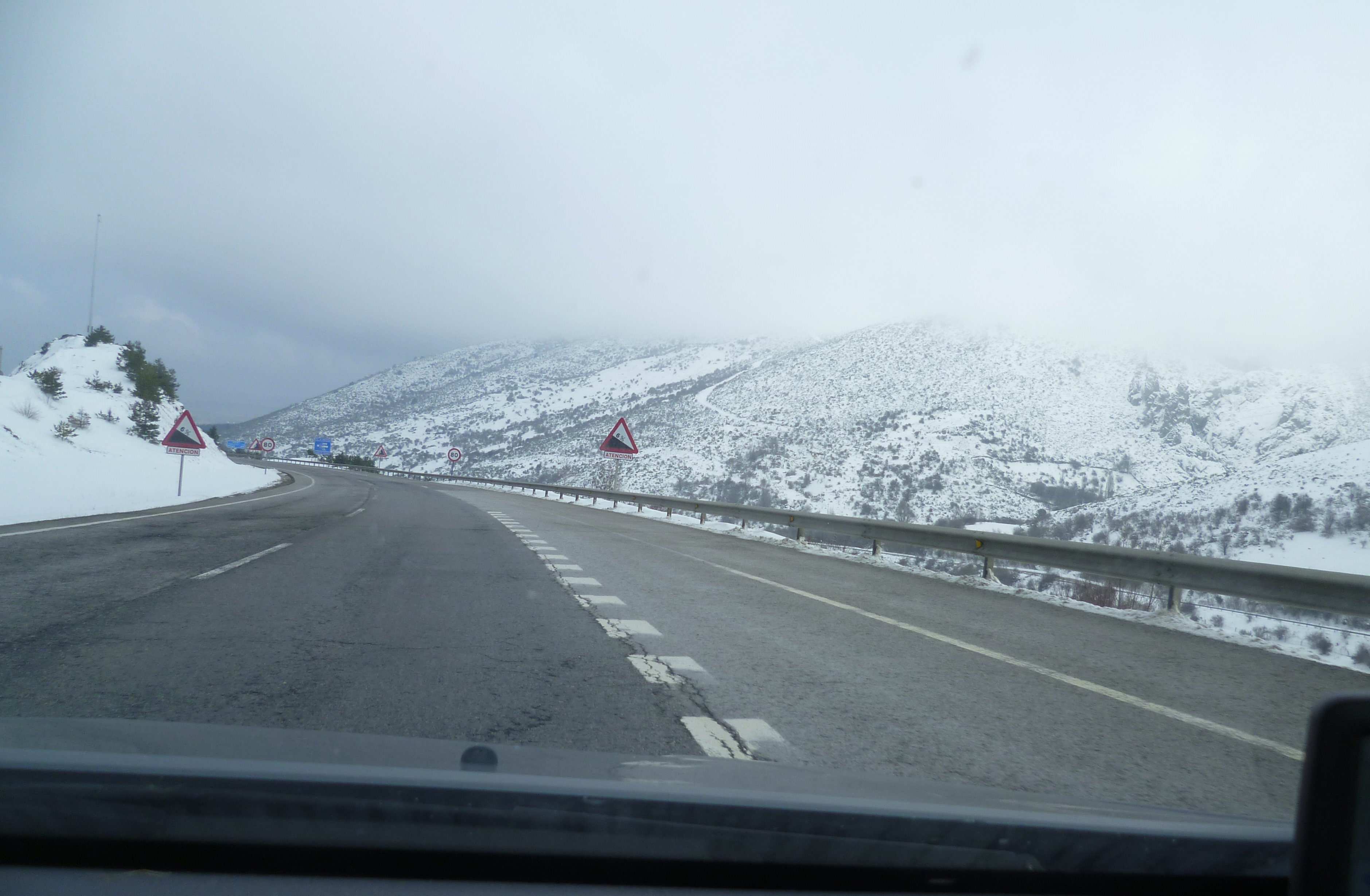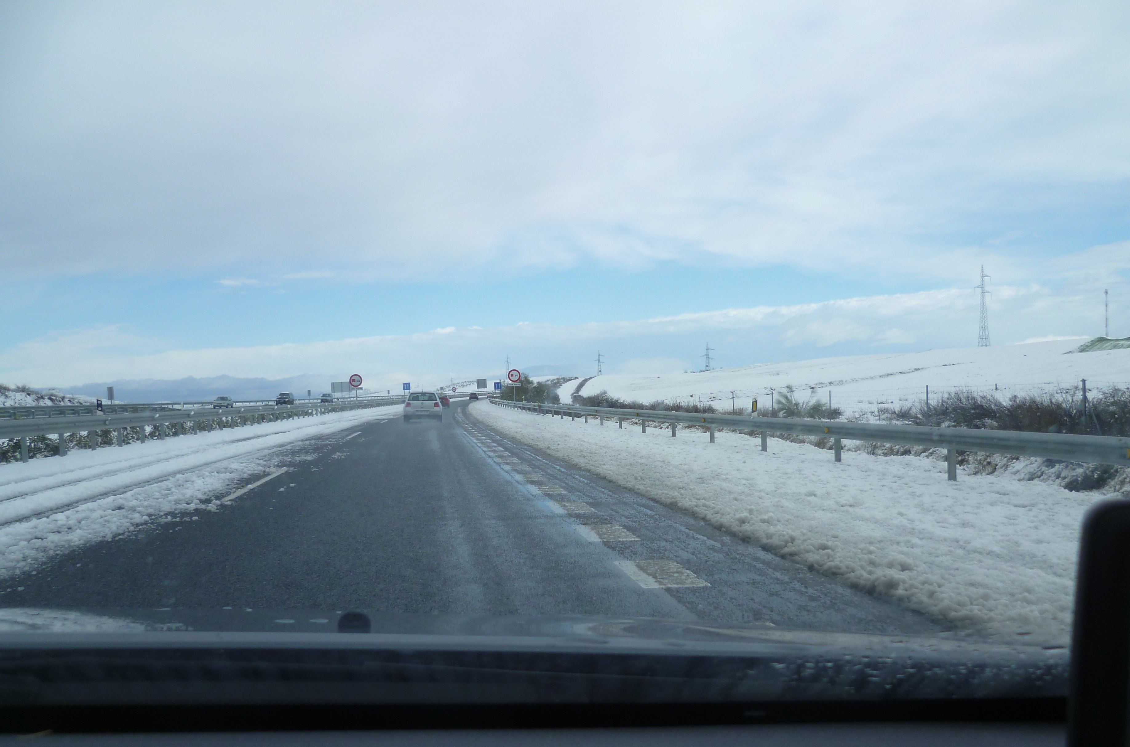 Yesterday was a busy day. It was time to pack everything away and start the journey home. There had been some rain in the earlier hours but by the time I was ready to leave at 8.30 it had stopped. I was quickly on the motorway and heading towards Motril. I took the road up to Granada and quickly became aware that what had fallen as rain in Torrox, had dropped as snow on the higher ground.