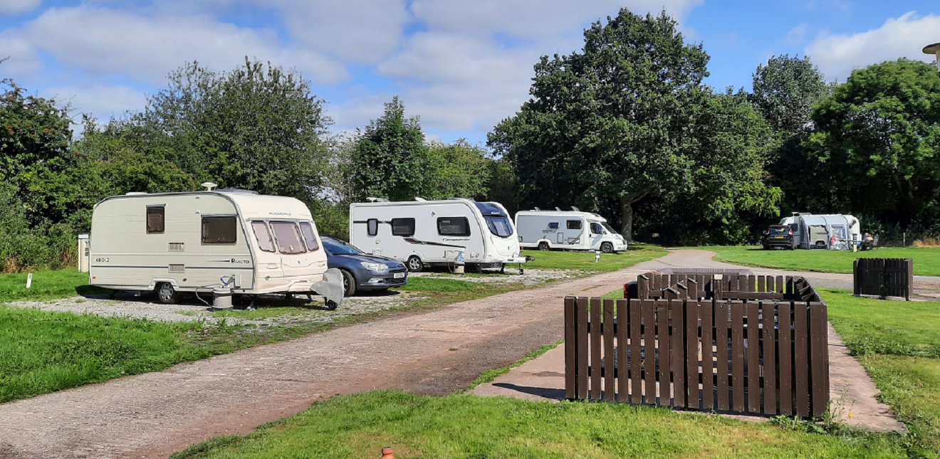 High Onn is situated in the midst of farming country served by a network of narrow lanes. The nearest villages are more than two miles away with only scattered farms and isolated cottages being the nearest neighbours. All of which makes the local lanes ideal for cycling and walking. The Shropshire Union canal is close by with a towpath accessible from the road bridges. In spite of the area’s isolation, it’s less than seven miles (as the crow flies) from the roar of the M6 motorway. High Onn is one of the Club’s smaller sites containing 60 or so pitches with 45 of them being large enough to take an awning. Many of them are on hard standing. The site is served by three service points, but there is no toilet block.