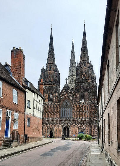 By 12.30 I found a secluded grotto, lit by some weak sunshine, so I sat on a bench and enjoyed a picnic lunch. Soon after, I returned to the car and headed off on my next visit in Lichfield. I found a parking spot in the Cathedral Close. Just across the road from where I’d parked was the garden entrance to the house where Erasmus Darwin, the grand-father of the more famous Charles Darwin lived – although Charles Darwin was not born until after the death of Erasmus.