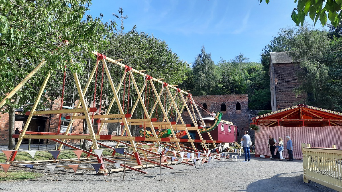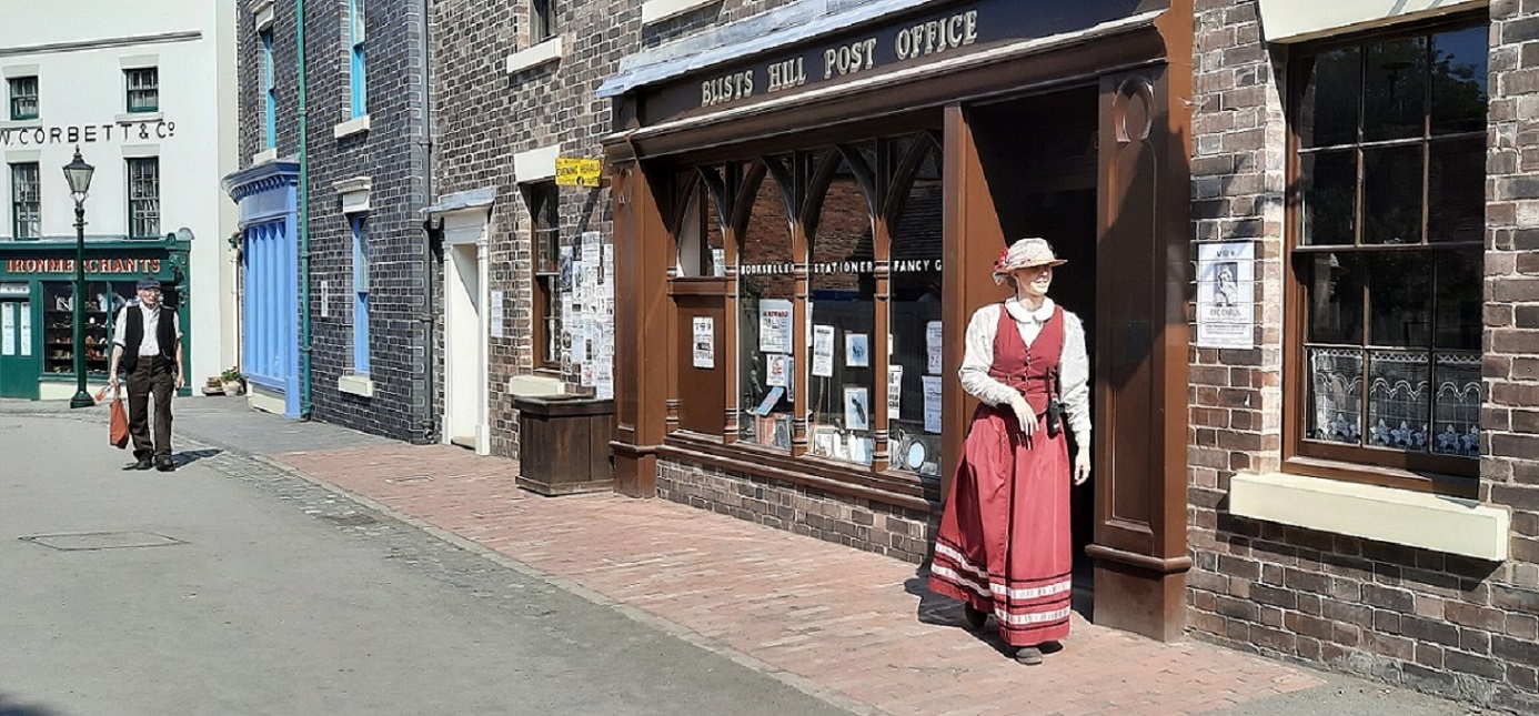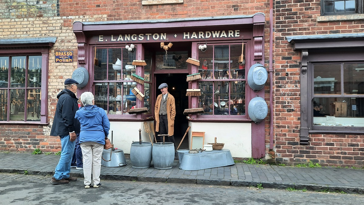 From Ironbridge, I drove up the hill for a few miles to reach the site of the Victorian Town. Although the canal and the blast furnaces are in their original places, all the other buildings have been re-erected from their previous locations. So as you walk through the town you pass the bank where the clerks sit at the high counter behind a heavy grill. Next door is the motor repair shop, whilst on the corner is the pharmacy.