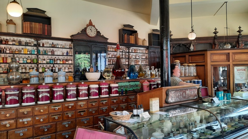 If you watched the “Victorian Pharmacy” series on TV, the interior of the shop will be instantly recognisable. Then there’s the drapers, the iron-mongers, the public-house, the post-office and sweet shop, all apparently open for business. Across the road is the fish&chip shop open for business and doing a roaring trade. Behind the shops is the casting foundry where molten metal is being poured into sand moulds