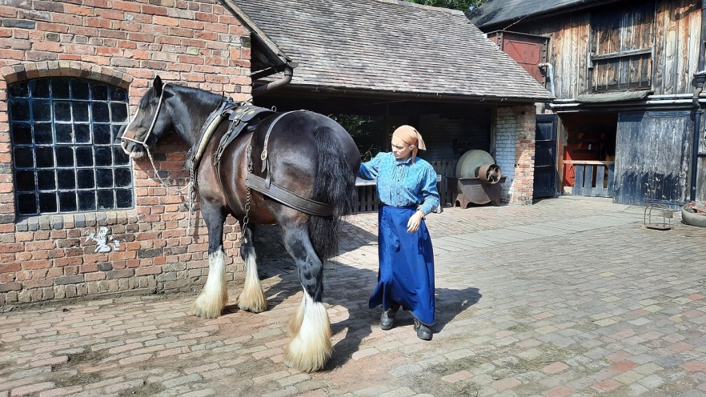 Today’s visit was one which needed to be booked as a timed slot, and in advance via the internet. Which was unfortunate because the day turned out to be not the best of days for an outside visit. My destination was the Black Country Open Air Museum. Currently, large areas are cordoned off because of ongoing building work. At one end of the site are workshops containing a variety of vintage motor cars and motor bikes.