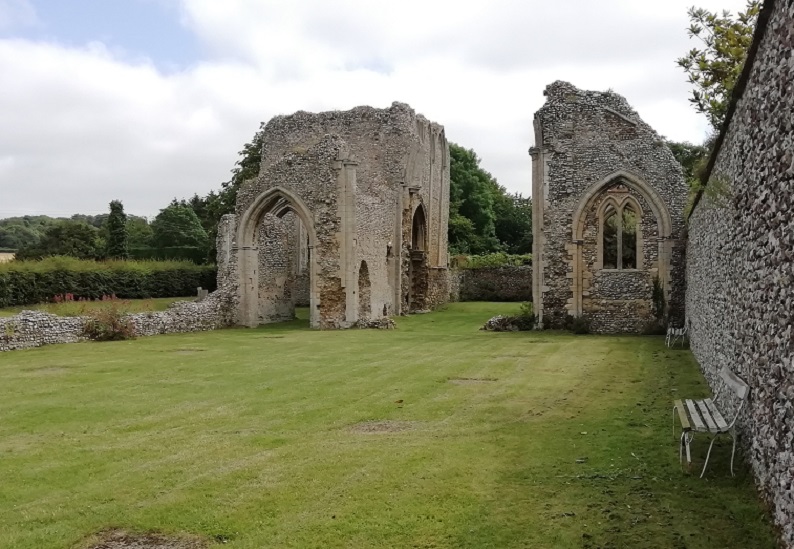Today my first stop was at Creake Abbey. The Abbey started in the early 1200’s as a small chapel built by Sir Robert Nerford and his wife. Later they added a hospital whose patients were looked after by a few Augustinian monks. Thirty years later King Henry III made several donations which allowed the chapel to increase in size and numbers, so that it became a priory. But two hundred years later, the community experienced a devastating fire which reduced parts of the priory to a ruin. The nave and transepts were demolished, leaving only a modest church once again. Finally in the 16th Century the priory was devastated by plague. The monks died one by one, leaving only the abbot as the sole survivor. After his lonely death, the abbey reverted to the crown.