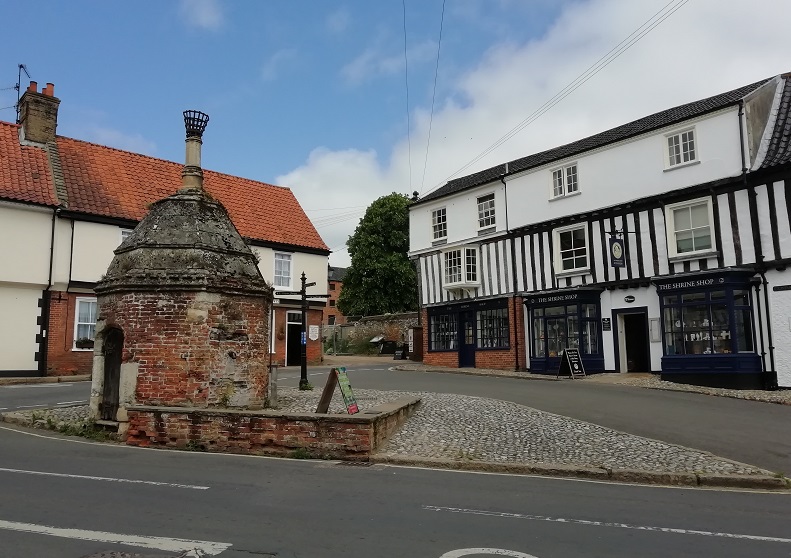 Another nine miles and I arrived in the ancient town of Walsingham. The main thoroughfares here are lined with medieval shops and houses.