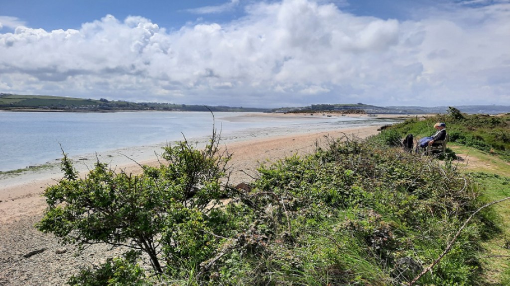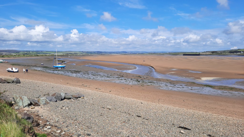 The mile-wide river mouth is formed by the confluence of two rivers. The Torridge and The Taw. On Wednesday I drove in the car along the banks of the Taw so that we could cross the river at Barnstaple. Once on the other side, I dropped off the girls close to the entrance of the Royal Marine base at Chivenor. From there, they set off on their five mile walk along the disused railway line, then onwards to Crow Point. Meanwhile I drove directly to Crow Point and unloaded my bike. I cycled along some quiet traffic-free lanes for several miles.. Later we enjoyed lunch overlooking the wide estuary.