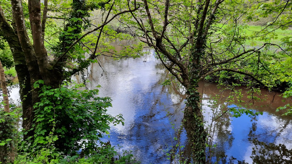 Later in the week after much planning, we set off on the 60 mile drive to the Cornish town of Bodmin. There, we met up with Sam, my grandson who had taken the train up from his university. I dropped the three of them at an arranged coordinate on the Camel trail – another disused railway line which has been converted for walking, biking and horse riding, whilst I drove to the car park at the Borough Arms, a lovely 19th Century country pub situated close to the Camel River. Once there, I unloaded my bike and cycled along the scenic route my party was still walking. By 1.30pm we had taken up our booking at the pub. https://theborougharms.com/